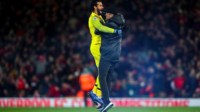 جن جنونه بعد هدف فريقه القاتل في الدقيقة الأخيرة، ليذهب يورجن كلوب ويحتفل بطريقة هيستيرية مع الحارس البرازيلي أليسون بيكر.