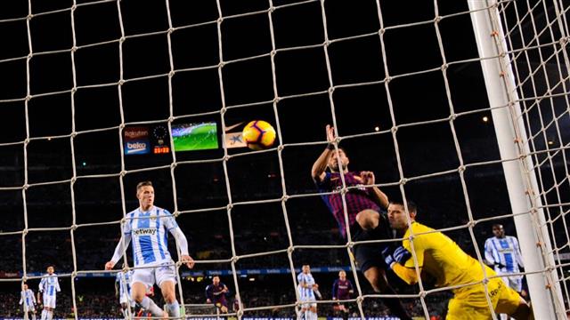 سواريز سجل هدف برشلونة الثاني، بعد تسديدة ليونيل ميسي، بعدما سدد الكرة وارتطم بحارس مرمى ليجانيس بقوة، لكن تقنية الـVAR أنصفت لويس.