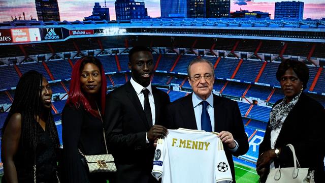 رحب "فلورنتينو بيريز" رئيس نادي ريال مدريد بلاعب الفريق الجديد "فيرلاند ميندي" القادم من صفوف أولمبيك ليون.
