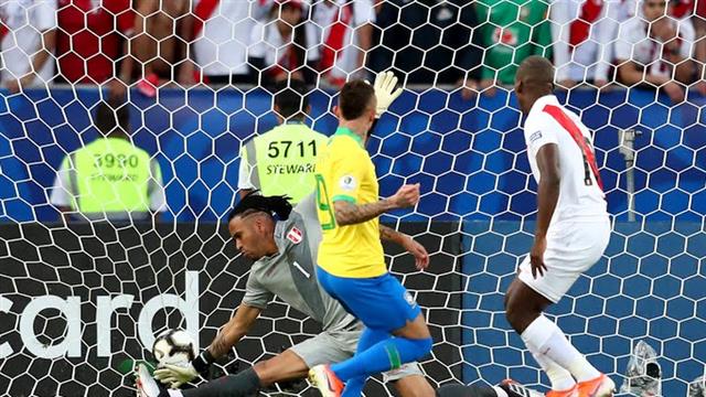 تقدم إيفرتون سواريس بالهدف الأول لمنتخب البرازيل في شباك بيرو، بنهائي كوبا أمريكا.
