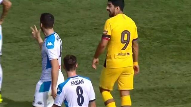 ورغم أن مباراة ودية إلا أن الدقيقة 25 من عمر الشوط الأول شهدت مشادة كلامية بين مانولاس وسواريز قبل أن يقوم لاعب نابولي بالإشارة بأصابعه برقم ثلاثة.