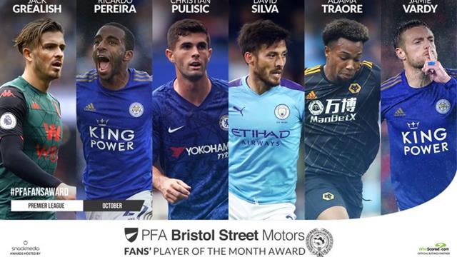 ويتنافس كل من ديفيد سيلفا لاعب مانشستر سيتي وجاك جريلتيش لاعب أستون فيلا وكريستيان بوليسيتش جناح تشيلسي وأداما تراوري مهاجم ولفرهامبتون مع ثنائي ليستر سيتي جيمي فاردي وريكاردو بيريرا.