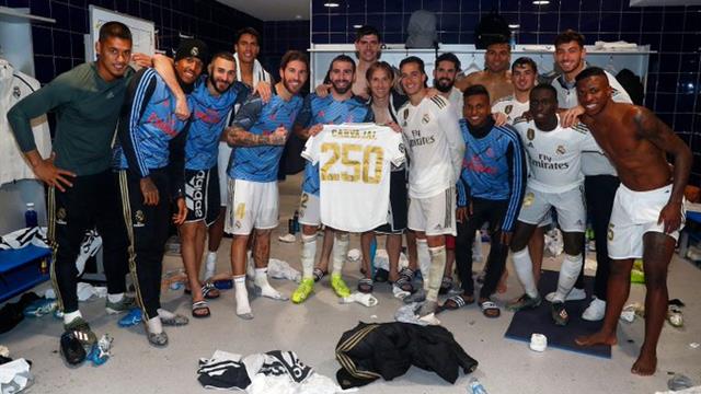 واحتفل الموقع الرسمي لريال مدريد بمشاركة داني كارفاخال في المباراة رقم 250 مع الفريق الملكي بحضور زملائه بالبلانكوس في غرفة خلع الملابس.