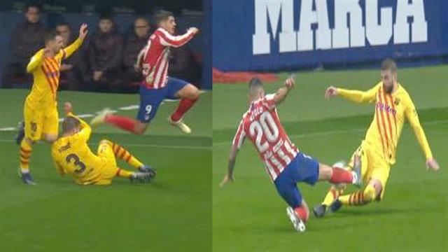 شهدت مباراة برشلونة وأتلتيكو مدريد بالجولة 15 من الدوري الإسباني، بعض اللقطات التي أثارت جدلاً تحكيميًا.