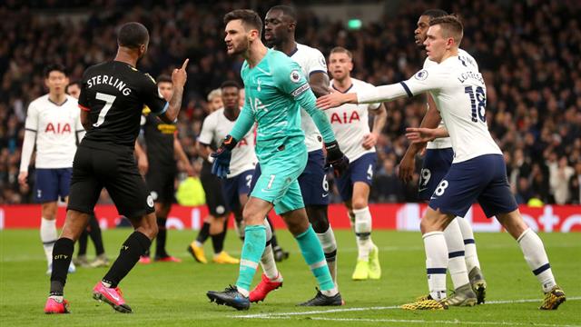 في الدقيقة 36، تعرض سيرجيو أجويرو مهاجم مانشستر سيتي، لعرقلة من سيرج أورييه ظهير توتنهام، داخل منطقة الجزاء.
