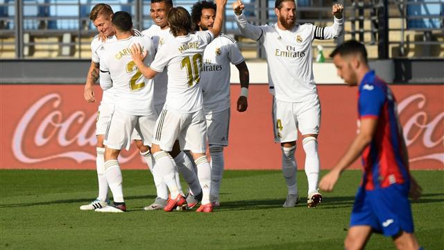 انتصر فريق ريال مدريد على ضيفه فريق إيبار بثلاثة أهداف لهدف، في المباراة التي جمعت بينمها، مساء اليوم، على ملعب "ألفريدو دي ستيفانو"، في اللقاء الذي أقيم خلف أبواب مُغلقة في ظل استمرار أزمة فيروس كورونا "كوفيد - 19"، ضمن لقاءات الجولة الثامنة والعشرين من الدوري الإسباني.