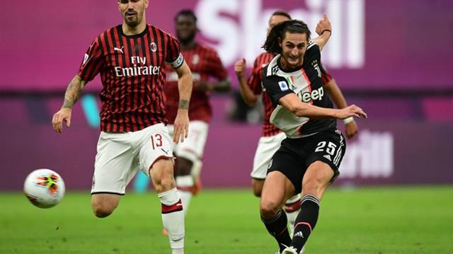 تقدم أدريان رابيو، بالهدف الأول لفريقه يوفنتوس، في شباك ميلان، خلال المباراة الجارية بين الفريقين.