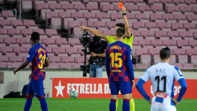 وأشهر حكم المباراة، خوسيه لويس مونويرا، البطاقة الحمراء في وجه فاتي بعد مراجعة الحالة عبر تقنية الـVAR في الدقيقة 50 والتي أظهرت اعتداء جناح برشلونة على لاعب إسبانيول، فرناندو كاليرو.