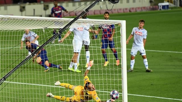 سجل النجم الأوروجوياني لويس سواريز ثالث أهداف برشلونة أمام نابولي، في المباراة الجارية الآن، من ركلة جزاء.