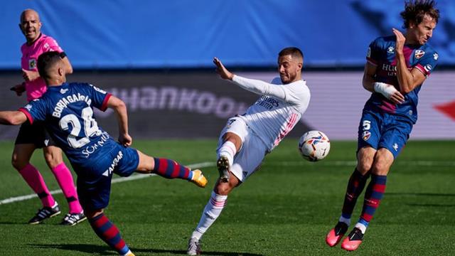 هازارد سجل هدف التقدم لـ ريال مدريد في مرمى هويسكا، في المباراة التي انتهت برباعية مقابل هدف للنادي الملكي، ضمن الجولة 7 من الدوري الإسباني على ملعب ألفريدو دي ستيفانو. "تقرير المباراة"
