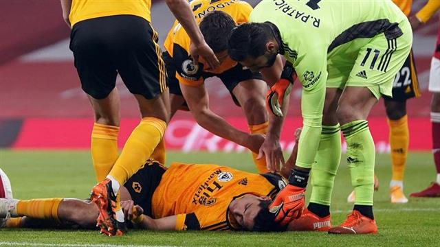 وتعرض راؤول خيمينيز لإصابة خطيرة في الدقيقة 5 بعد تدخل رأسي عنيف مع مدافع آرسنال ديفيد لويز، في المباراة التي فاز بها الذئاب على الجانرز بهدف نظيف.