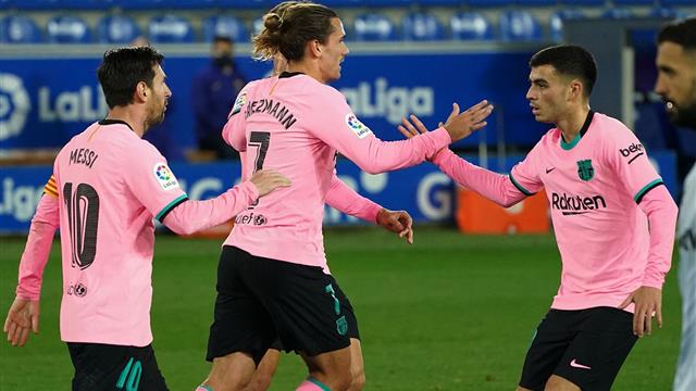 خط الهجوم: ديمبلي، جريزمان، بيدري، ميسي.