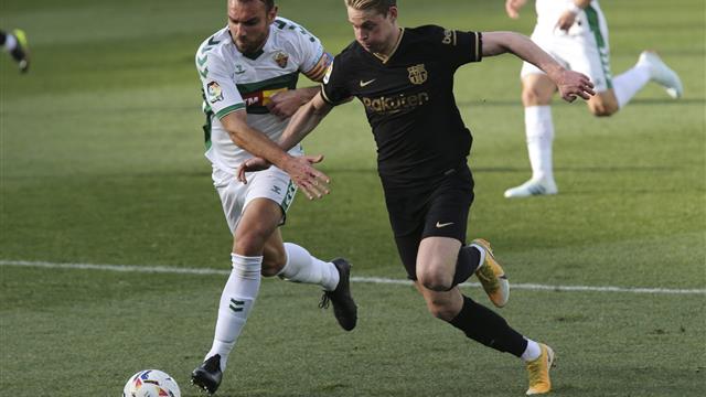 سجّل الدولي الهولندي، فرينكي دي يونج، لاعب وسط برشلونة، الهدف الأول لفريقه في مرمى إلتشي بمسابقة الدوري الإسباني.