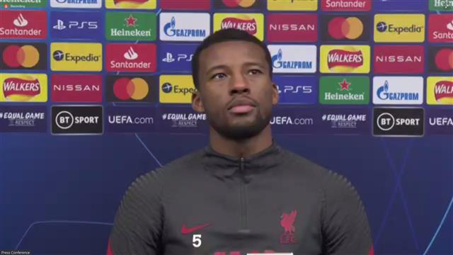 ظهر الدولي الهولندي جورجينيو فينالدوم، لاعب وسط فريق ليفربول، في مؤتمر صحفي، للحديث عن مباراة لايبزيج الألماني، في مسابقة دوري أبطال أوروبا.
