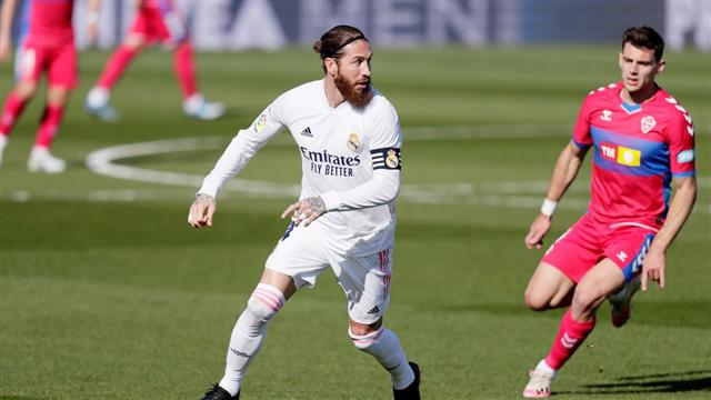 ريال مدريد فاز على إلتشي بنتيجة (2-1) في الدوري الإسباني، وشهدت المباراة جدلاً حول عدم احتساب ركلة جزاء لصالح سيرجيو راموس بعد جذب ذراعه من قبل لاعب الخصم ماركون.