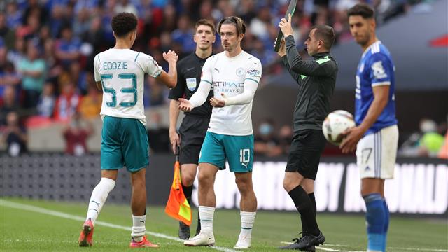 شهدت المباراة الجارية حاليًا بين فريقي مانشستر سيتي وليستر سيتي، في كأس الدرع الخيرية مشاركة اللاعب جاك جريليش لأول مرة مع بطل الدوري الإنجليزي.