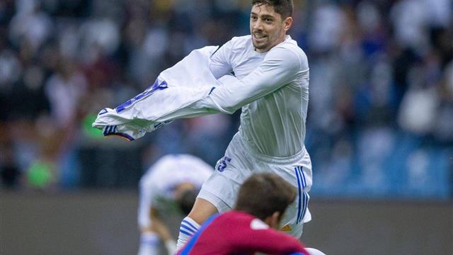 أحرز الدولي الأوروجوياني، فيديريكو فالفيردي، الهدف الثالث لـ فريقه ريال مدريد في شباك برشلونة، خلال المباراة الجارية بينهما في كأس السوبر الإسباني.