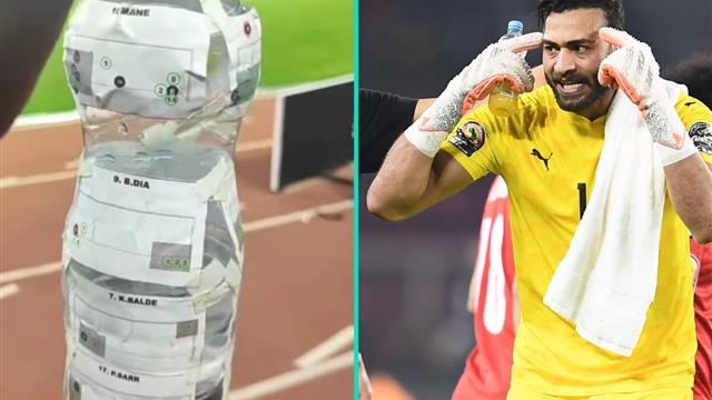 Egypt goalkeeper Gabaski forgot his bottle after the defeat. Info on Senegal's penalty takers.