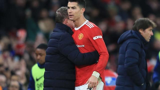 مازح رالف رانجنيك المدير الفني لفريق مانشستر يونايتد، النجم البرتغالي كريستيانو رونالدو، بعد فوز اليوم على توتنهام في الدوري الإنجليزي.