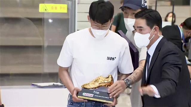 Hundreds of fans gathered at Incheon International Airport in South Korea to welcome soccer player Son Heung-min and cheered loudly as he showed the Golden Boot award pic.twitter.com/ekEDrNigq4 — Reuters (@Reuters) May 24, 2022