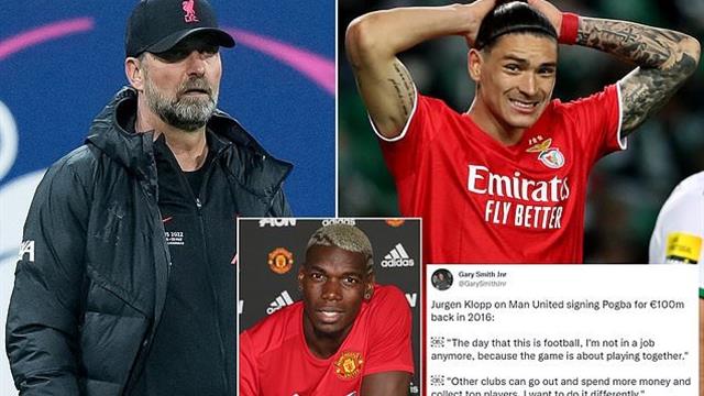 مانشستر يونايتد في 2016 تعاقد مع بوجبا من يوفنتوس، مقابل 100 مليون إسترليني، وحينها كلوب عبر عن رأيه وانتقد فكرة دفع هذا المبلغ الضخم في لاعب واحد فقط.