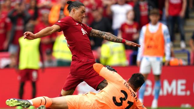 أحرز داروين نونيز، هدف ليفربول الثالث أمام مانشستر سيتي، في المباراة بين الفريقين على ملعب "كينج باور".