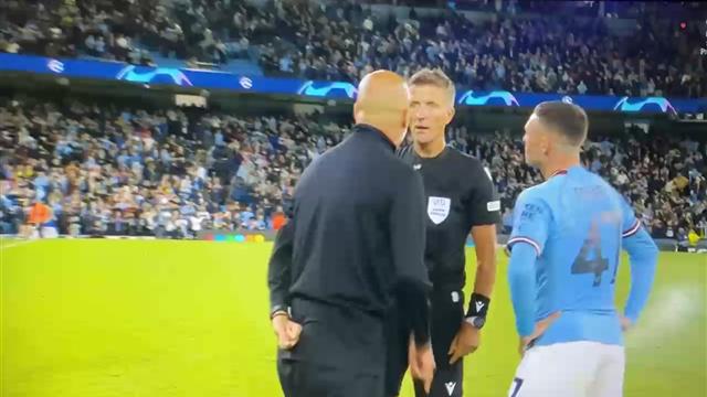 واحتج جوارديولا على إنذار فيل فودين، حيث اتجه إلى الحكم ودخل في مشادة كلامية معه، قبل أن يحصل الإسباني على بطاقة صفراء.