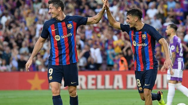 أشاد بيدري جونزاليس لاعب وسط برشلونة بزميله في الفريق، روبرت ليفاندوفسكي وعثمان ديمبلي.