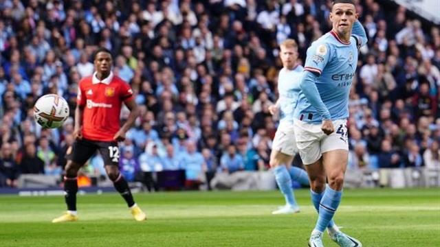 مانشستر سيتي يستضيف مانشستر يونايتد، وفي شوط واحد فقط، أكرمه برباعية عن طريق فيل فودين (هدفين) وهالاند (هدفين).