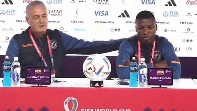 أنقذ مدرب منتخب الإكوادور، جوستافو ألفارو، اللاعب مويسيس كايسيدو من مشكلة خلال المؤتمر الصحفي قبل المباراة الافتتاحية لمونديال قطر 2022.