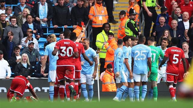 طرد رودري في مباراة مانشستر سيتي ونوتنجهام فورست