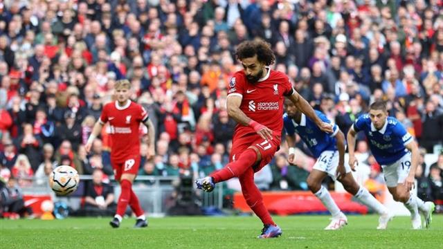 تقدم ليفربول بهدف أمام نظيره إيفرتون عن طريق محمد صلاح بالقدم اليسرى من ركلة جزاء، في المباراة التي تجمع الآن بينهما على ملعب أنفيلد، ضمن الجولة 9 من الدوري الإنجليزي الممتاز.