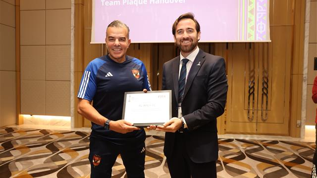 وفد فيفا يُسلم خالد مرتجي شهادة توثيق مشاركة الأهلي التاسعة في كأس العالم للأندية