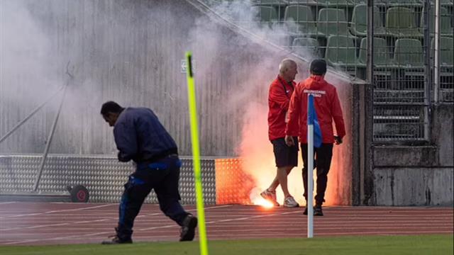 بعد تدخل قوات الأمن، قام عدد من مشجعي صربيا باطلاق صيحات الاستهجان ثم تم إطلاق ألعاب نارية على الشرطة.