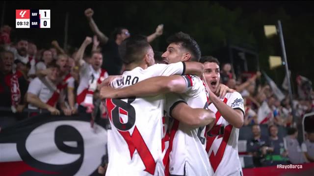 تقدم فريق رايو فاليكانو بهدف أول في شباك فريق برشلونة، في مباراتهما الجارية حاليًا في بطولة الدوري الإسباني، 2024/25.