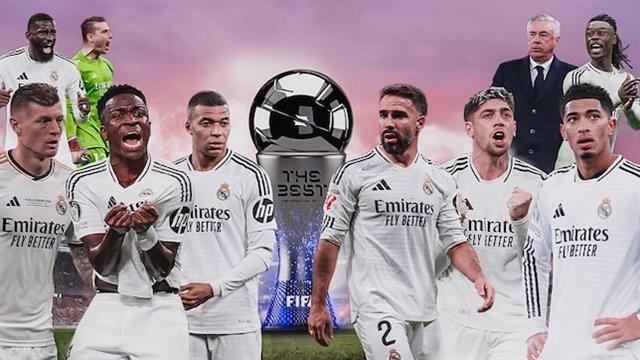 ويتواجد من ريال مدريد فقط بقائمة المرشحين 6 لاعبين وهم جود بيلينجهام، داني كارفاخال، توني كروس، كيليان مبابي، فيدي فالفيردي وفينيسيوس جونيور.