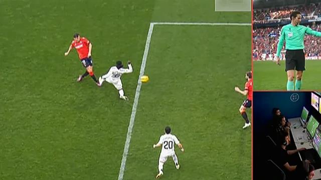 ومنح حكم المباراة ضربة جزاء لأوساسونا بعد وجود خطأ من إدواردو كامافينجا لاعب ريال مدريد.