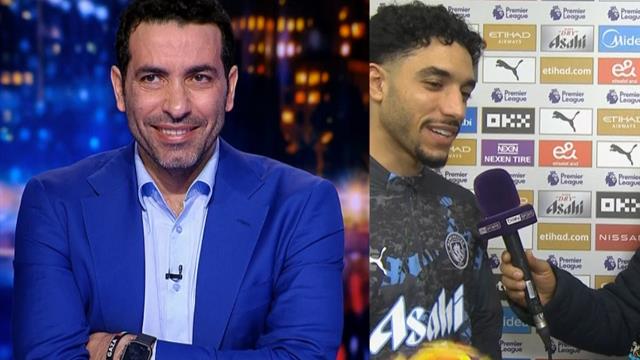 وعن أول شيء جاء في ذهنه بعدما سجل الهاتريك، قال: "أول شيء هو شعوري بأنني وصلت النادي، مانشستر سيتي (وسط ابتسامة تقدير من أبو تريكة وكأنه يشيد بإجابة مواطنه)".