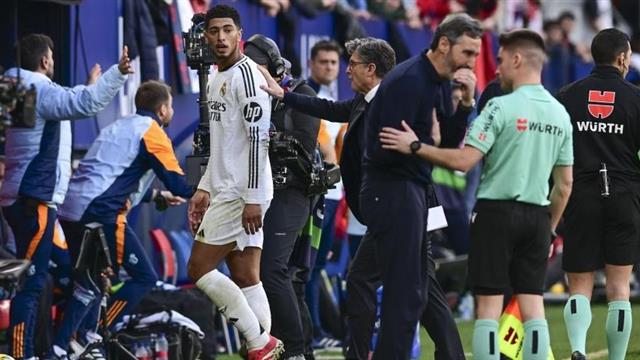 وكان بيلينجهام قد تعرض للطرد قبل نهاية الشوط الأول بـ 5 دقائق، عندما كانت تشير النتيجة لتقدم ريال مدريد، قبل ان يكمل النادي الملكي المباراة بـ 10 لاعبين، ويتعادل بملعب السادار.