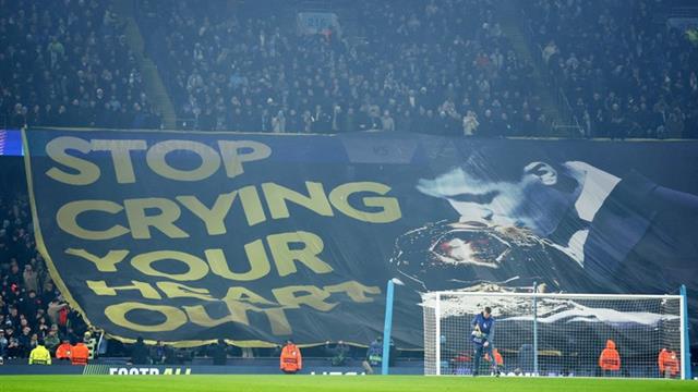 وكانت جماهير السيتي رفعت لافتة في مباراة الذهاب، يظهر عليها رودري لاعب مانشستر سيتي وهو يقبل الكرة الذهبية، مع عبارة "توقف عن البكاء من قلبك".