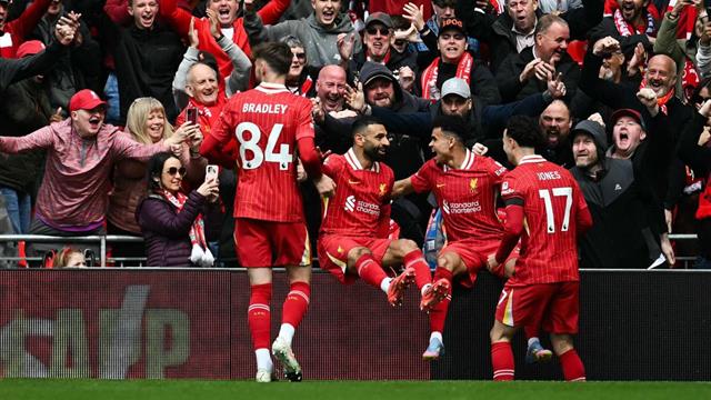 هدف ليفربول الأول جاء من خلال تلقي محمد صلاح لتمريرة طويلة من إبراهيما كوناتي، لينجح صلاح في الهروب من الرقابة الدفاعية وإرسال تمريرة عرضية أرضية رائعة لـ لويس دياز، الذي سدد الكرة في الشباك.