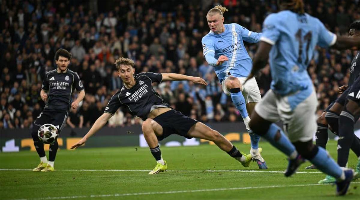 وسجل النرويجي إيرلينج هالاند هدف التعادل لمانشستر سيتي في شباك ريال مدريد، وذلك بالدقيقة 41 من عمر اللقاء.